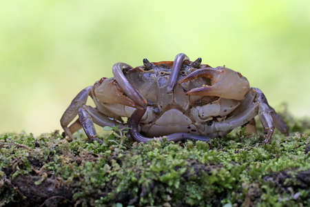 A field crab shows an expression ready to attack. This animal has the scientific name Parathelphusa convex