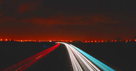 Traffic on the highway at sunset. Long exposure photo taken with a long exposure.