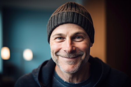 Portrait of a smiling man in a hat and sweater looking at the camera