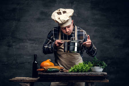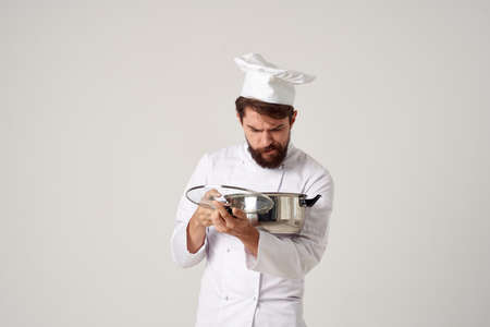 professional chef with a pot in his hands kitchen service profession