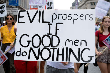 London, United Kingdom, 13th July 2018:Placards carried by anti Donald Trump protesters marching in central London