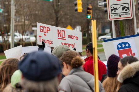 CHARLOTTE, NORTH CAROLINA/USA - February 7, 2020: Supporters and opponents of President Donald Trump hold signs in anticpation of his visit to Charlotte, NC on February 7, 2020