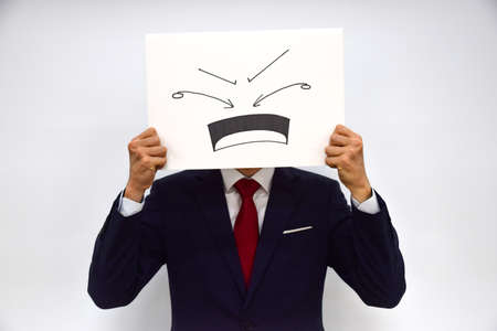 Asian man shouting frustrated with rage, hands trying to strangle, yelling mad. Isolated on white background with copyspace