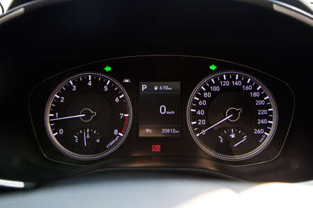 Odometer Car digital modern , Panel of devices of car afoot. background is not isolated. the Neterlands.