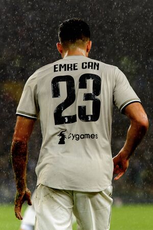 UDINE, ITALY - OCT 6, 2018: Emre Can portrait. Udinese - Juventus. Dacia Arena stadium. Serie A TIM