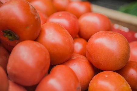 Tomatos in a market stall