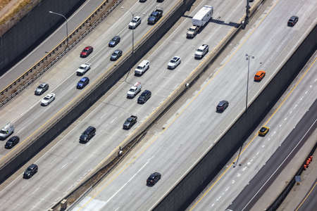 aerial view of a freeway with cars in motion, created with generative ai
