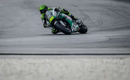 SEPANG, MALAYSIA - NOVEMBER 03, 2019 : LCR Honda British rider Carl Crutchlow (35) during the Malaysia Motorcycle Grand Prix (MotoGP) at Sepang International Circuit (SIC).