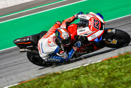 SEPANG, MALAYSIA - NOVEMBER 03, 2019 : Francesco Bagnaia of Italy and Pramac Racing (63) during the Malaysia Motorcycle Grand Prix (MotoGP) at Sepang International Circuit (SIC).