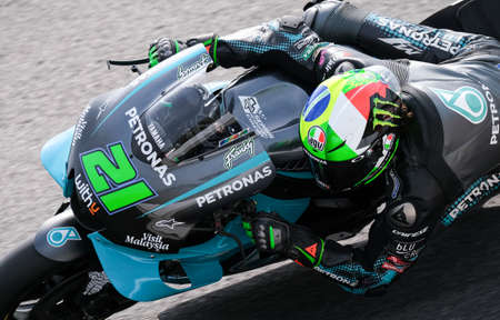 SEPANG, MALAYSIA - NOVEMBER 04, 2018 : EG 0,0 Marc VDS Italian rider Franco Morbidelli in action during the MotoGP race of the Malaysian Motorcycle Grand Prix at Sepang Circuit.