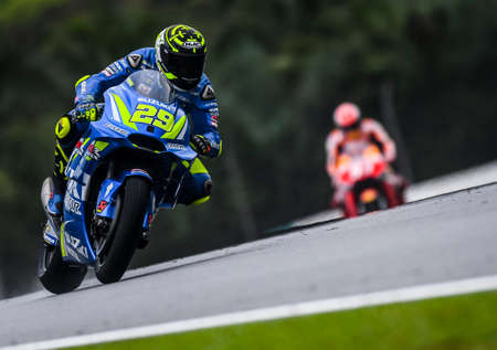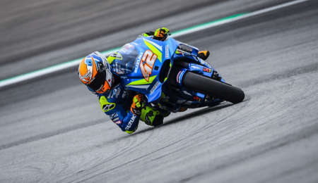 SEPANG, MALAYSIA - NOVEMBER 04, 2018 : Alex Rins of Spain and Team Suzuki ECSTAR during the MotoGP race of the Malaysian Motorcycle Grand Prix at Sepang International Circuit.