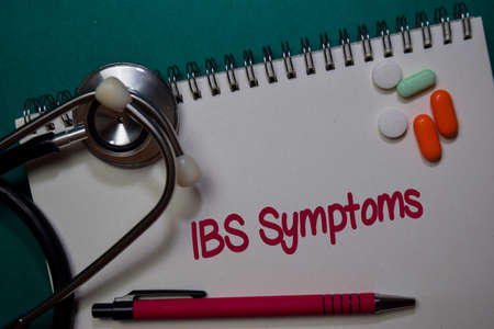 IBS Symptoms write on a book isolated on Office Desk. Healthcare concept