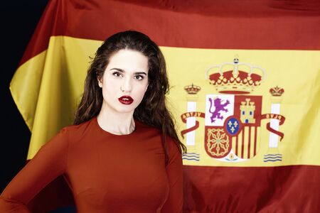 Spain, flag is fluttering in the wind photo on the background of the sky, outdoors. National flag