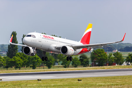 ISTANBUL, TURKIYE - JUNE 29, 2024: Iberia Airbus A320-251N (10869) landing to Istanbul International Airport