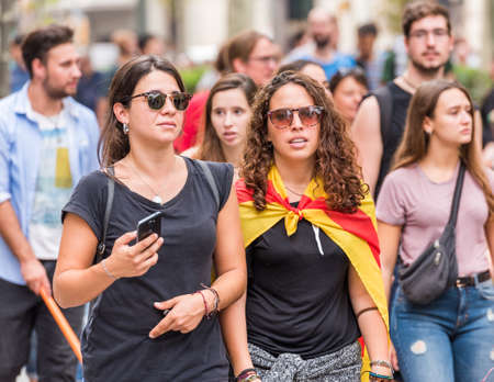 BARCELONA, SPAIN - OCTOBER 3, 2017: Women at a demonstration in Barcelona. Close-up