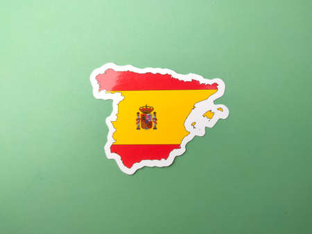National flag of Spain. Country outline on white background with copy space. Politics illustration.