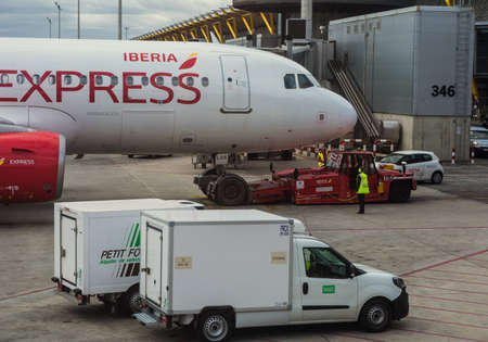 ZURICH, SWITZERLAND - CIRCA OCTOBER, 2018: an Iberia aircraft taxiing at Zurich International Airport.