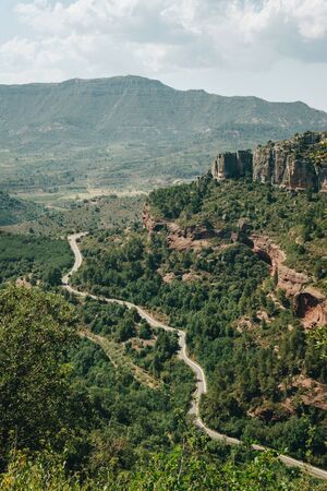 Idylic view of a picturesque town in Peñagolosa hill. Cedraman village, in the province of Castellon, Valencian Community, Spain.