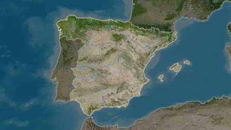 Spain area map in the Azimuthal Equidistant projection. satellite imagery. Full composition of rasters without borders