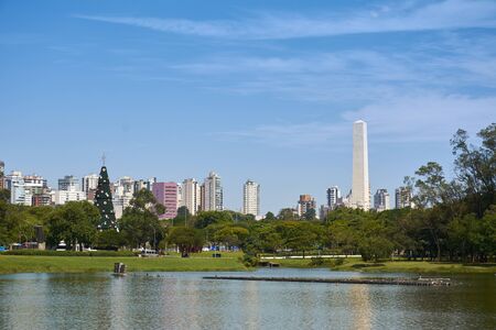 Skyline view of Sao Paulo showcasing the Obelisk in Ibirapuera Park