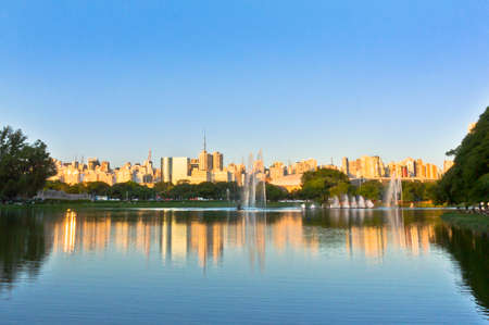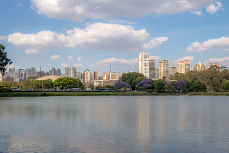 Ibirapuera Park Lake and city skyline - Sao Paulo, Brazil