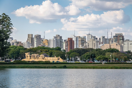 Bandeiras Monument, Ibirapuera Park and city skyline - Sao Paulo, Brazil