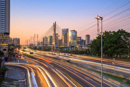 Octavio Frias de Oliveira Bridge in Sao Paulo Brazil at twilight