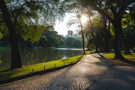 Park Barigui in Curitiba at golden sunrise, capital of Parana state, Brazil