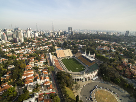 Football around the world, Pacaembu Stadium Sao Paulo Brazil Video made day 06/27/2016 Name: Municipal Paulo Machado de Carvalho stadium Filming with drone