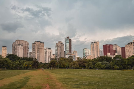 Ibirapuera Park with buildings in the background in Sao Paulo, Brazil