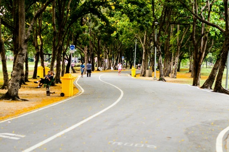 Park in the evening with sunbeams, Bangkok, Thailand.
