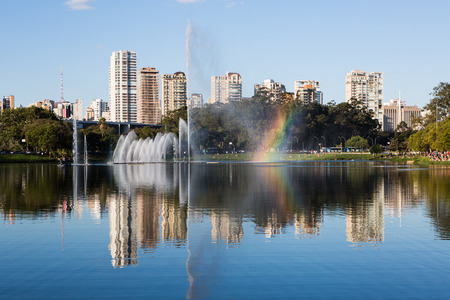Fountain makes a rainbow in Ibirapuera Park, Sao Paulo - Brazil