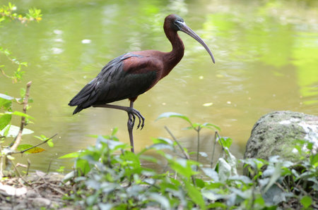 Ibis Rokoroko Bird (Plegadis falcinellus) at the bird park