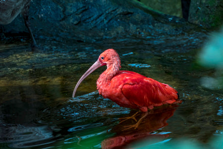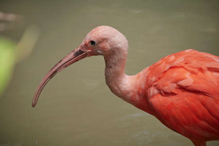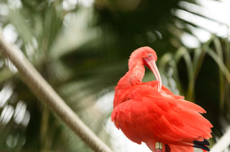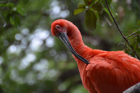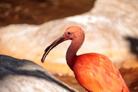 Scarlet Ibis bird Eudocimus tropical wader bird close up. South Africa