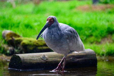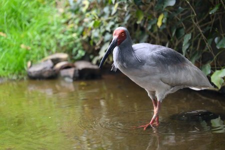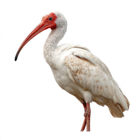 This isolated image features an ibis bird with a striking red beak and eye, showcasing its elegant feathers against a neutral backdrop. Perfect for wildlife photography enthusiasts and nature projects.