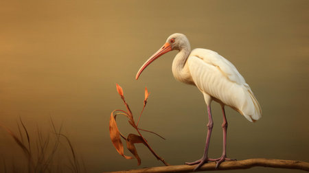 the american white ibis, with its striking white plumage and curved bill, perches elegantly on a brown stem, set against a vibrant, sun-kissed background, showcasing its natural beauty in this stunning high-definition photograph, perfect for nature enthusiasts and birdwatchers alike. ai generated