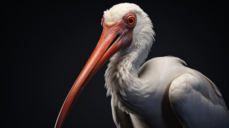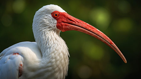 the american white ibis, a majestic wading bird, is beautifully captured in this stunning passport-sized photo, showcasing its striking white plumage, curved bill, and vibrant red eyes, taken with a 50mm lens, highlighting the bird's intricate details in its natural habitat. ai generated
