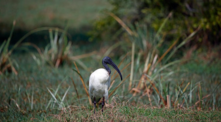 The Australian White Ibis is characterised by having predominantly white plumage with a featherless black head, neck, and legs. Its bill is also black, long and down curved