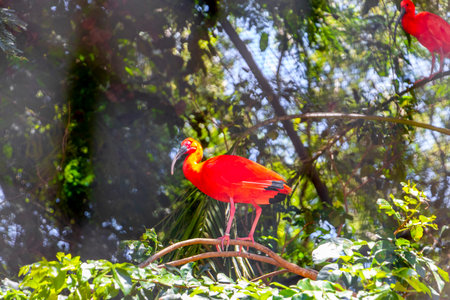 Scarlet Ibis red bird birds in tropical nature rainforest jungle and park in Foz do Iguacu State of Parana Brazil.