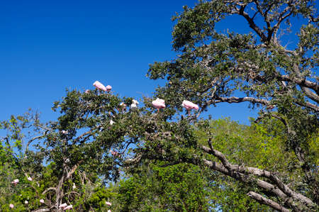 The Roseate Spoonbills on the tree in St. Augustine, FL.