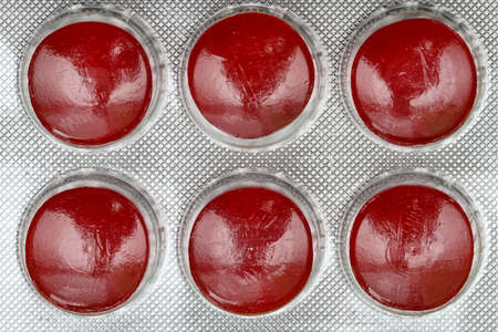 closeup of red tablets on background