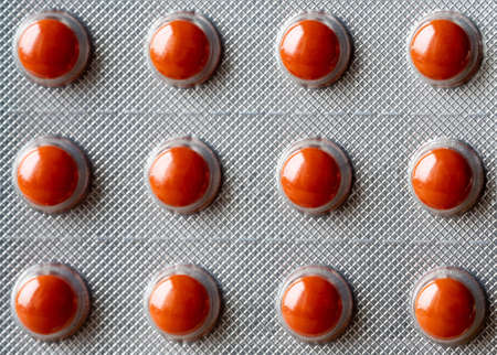 medical preparations. twelve orange round tablets in a blister pack
