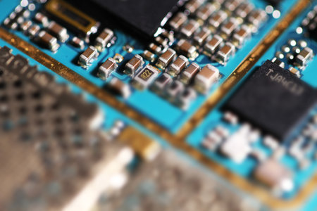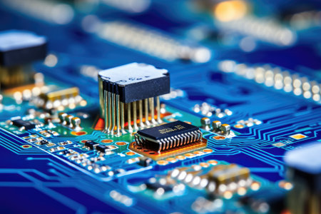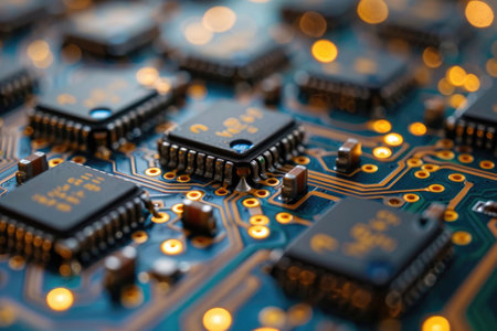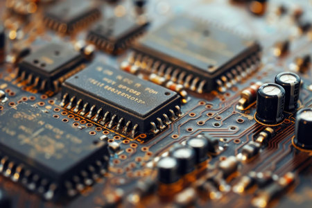 Detailed view of computer circuits and microchips showcasing electronic components
