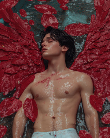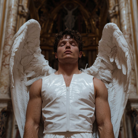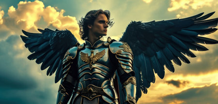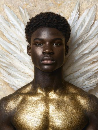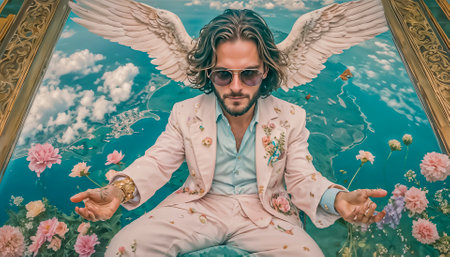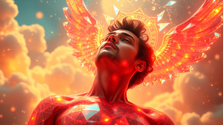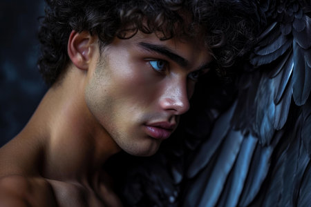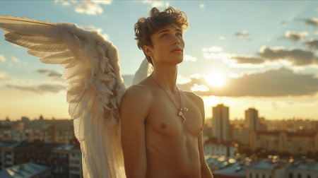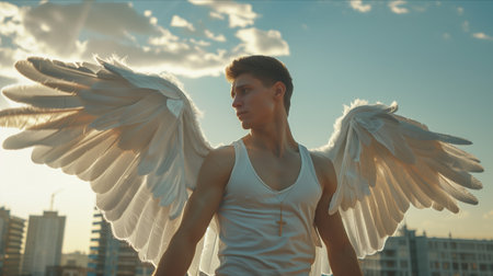 Ethereal Angel handsome male wings. Hope beauty. Generate Ai