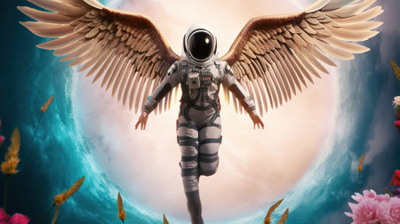 An astronaut gracefully floats through space, surrounded by stars and planets, capturing the boundless beauty and infinite wonder of the universe.