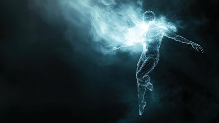 Human body and energy concept as a silhouette of a male figure emerging from a blast of smoke as a symbol of power and energy.