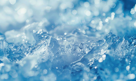 Crystal clear abstract background showcases sharp ice formations with cool blue tones, creating a serene atmosphere ideal for design and artistic projects