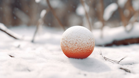 A delicate snow globe resting on a snowy surface in forest during winters gentle snowfall