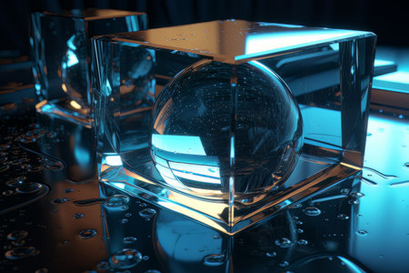 Crystal decorative ball with air bubbles inside t the table made with generative Ai
