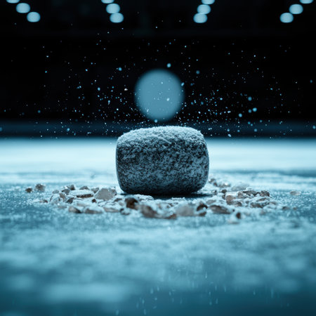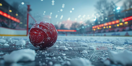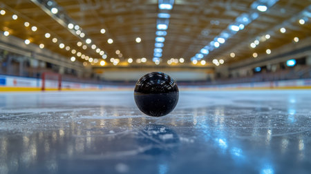 Close-Up of a Black Rubber Hockey Puck on Ice Ready for Action During an Intense Hockey Game Scene